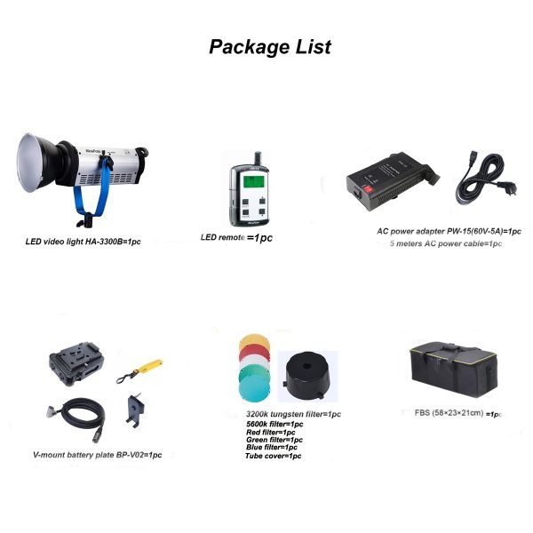 El Cañón Led HA-3300B de Nicefoto es una luz de vídeo con un nuevo sistema, cuenta con el control remoto de 2.4Ghz y funciones de control de APP bluetooth. Es alimentado por un adaptador de corriente externa o batería de litio V-mount BP. La nueva gama de LED COB tiene una larga vida útil, temperatura de color precisa, el indice de reproducción cromática (CRI) y el índice de generalidad de iluminación de TV (TLCI) son altos, y también cuenta con una variedad de efectos de escena, por último, pero no menos importante, también puede soportar la función DMX. Se refrigera mediante un tubo de calor y un ventilador silencioso, manteniendo así un rendimiento estable y fiable. Adecuado para la fotografía y el vídeo, la emisión de televisión, streaming, estudios profesionales, la fotografía comercial, etc.