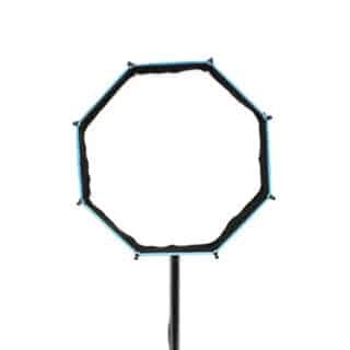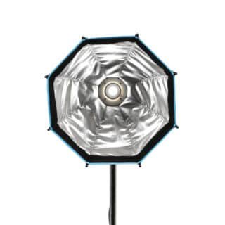 El interior reflectante plateado maximiza la salida de luz del foco, mientras que el difusor frontal removible suaviza la luz y reduce el contraste. Su forma octagonal permite una iluminación envolvente y genera reflejos naturales en los ojos del sujeto.