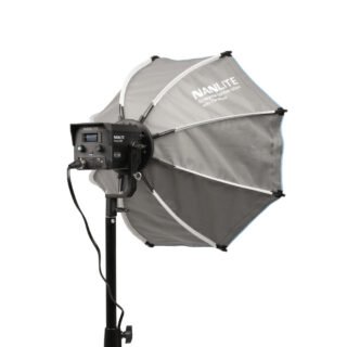 El Nanlite SB-FMM-O-60 es un softbox compacto y liviano diseñado para focos LED con Montura FM, como los Forza 60B II, FS-60B, FC-60B, entre otros. A diferencia de los softboxes tradicionales que requieren montaje manual, el SB-FMM-O-60 cuenta con un sistema de apertura rápida que permite un armado y desarmado veloz. Incluye una rejilla tipo panal (eggcrate) para dirigir la luz hacia el sujeto y evitar derrames sobre paredes u objetos cercanos. También se incluye un bolso compacto que permite guardar el softbox, la rejilla y el difusor.